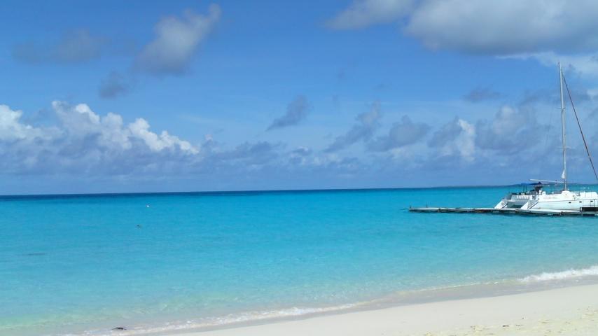 海はソーダ・エメラルド・ブルーとグラデーションが素晴らしく、砂は白くサラサラで、浅い場所はプールのような感じでキレイです。