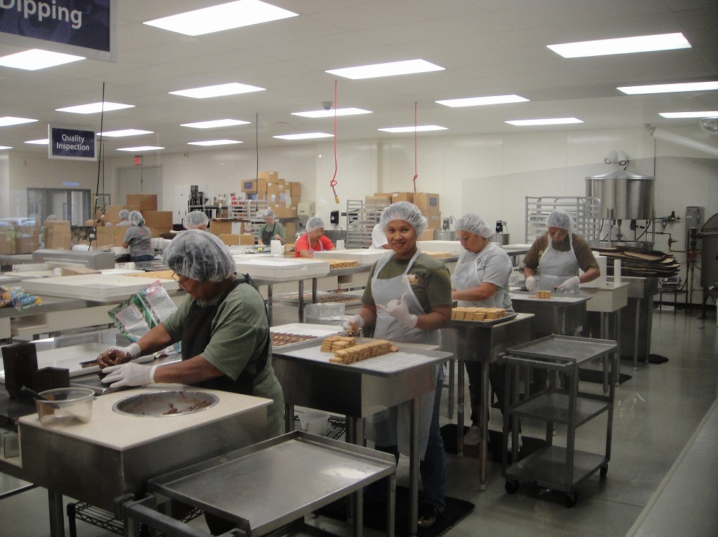 中も広く、クッキーやチョコレートを作っているところをガラス越しで見ることが出来、楽しめます。