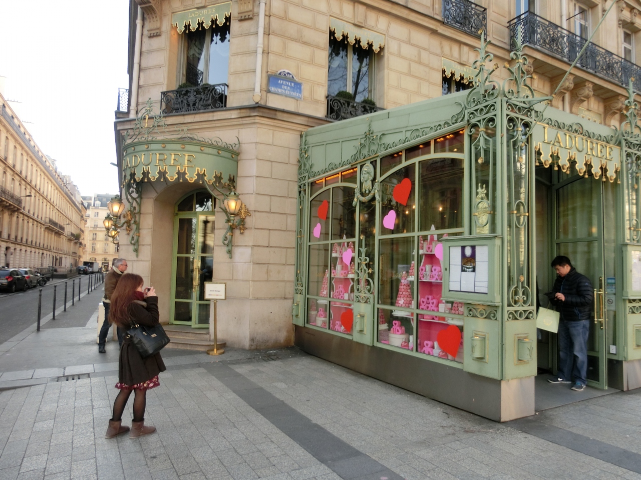 花の都パリのシャンゼリゼ通りの中心にあり、緑の外観で、かわいい!!