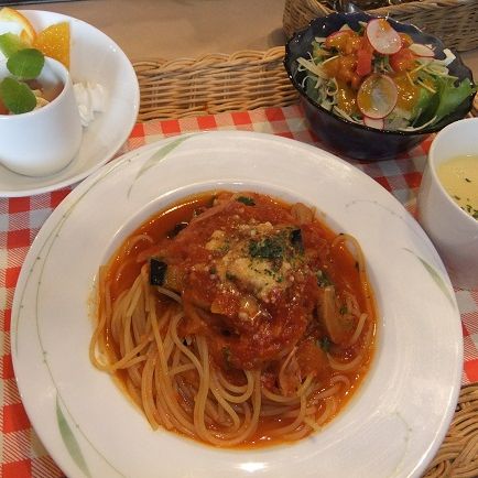 画像の料理の他に、豆腐ハンバーグとチーズケーキ、珈琲が付いて1575円。