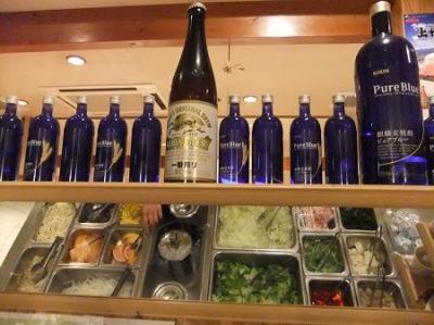 夜は居酒屋さんになるような酒瓶の並んだお店だ。