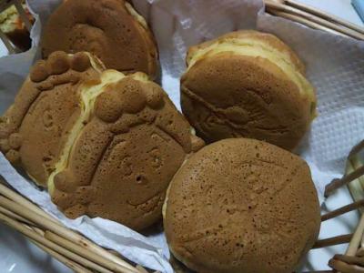 外から見るとお手頃なお値段にメニューにサザエさん一家の名前で実物もかわいくてお土産に沢山買いました。でも、我が家には合いませんでした(汗)普通の二重焼きとは違って記事がかなり柔らかく 焼き感がなかったですね。甘い生地にもんじゃ味もありちょっとあいませんでした。唯一チョコレートはおいしいかなと。