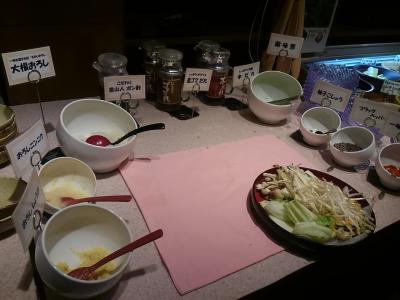 夜は、外で食べるつもりで予約しませんでしたが、食べるところがなく居酒屋に行きました。美味しかったけど1品に時間がかかりすぎ…(~_~;)しょうがなく白ごはんでおなかを膨らます作戦しか。やはりここで予約しておけばよかったです。予約しなくても早くいけばその日にレストランで定食が食べれたようですし。朝食はびっくりするくらいのごちそうでした。