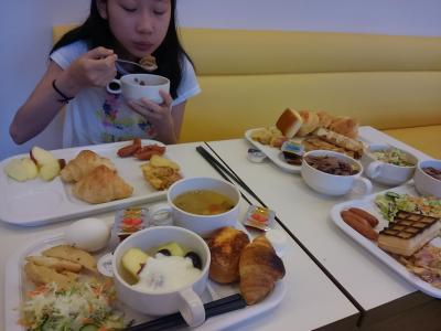 食事をどうしようかとおもってましたが、疲れていたのでホテルの1Fにある居酒屋に。チェーン店のお値段よりは少しお高めですが、おいしくて、どれもボリュームたっぷり。店員さんもとてもよかったです。翌朝は、その居酒屋が朝食会場でした。バイキングでかなりボリュームのある内容。