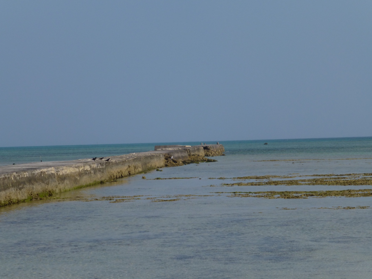黒島の北のほうにあります.全長354M、かつての黒島の玄関でしたが今は使われていません。国の登録文化財。何年か前にたぶん台風で途中が崩れてしまいました。まず人と会うことはありません。桟橋に腰掛けてまったりとするのが好きです。