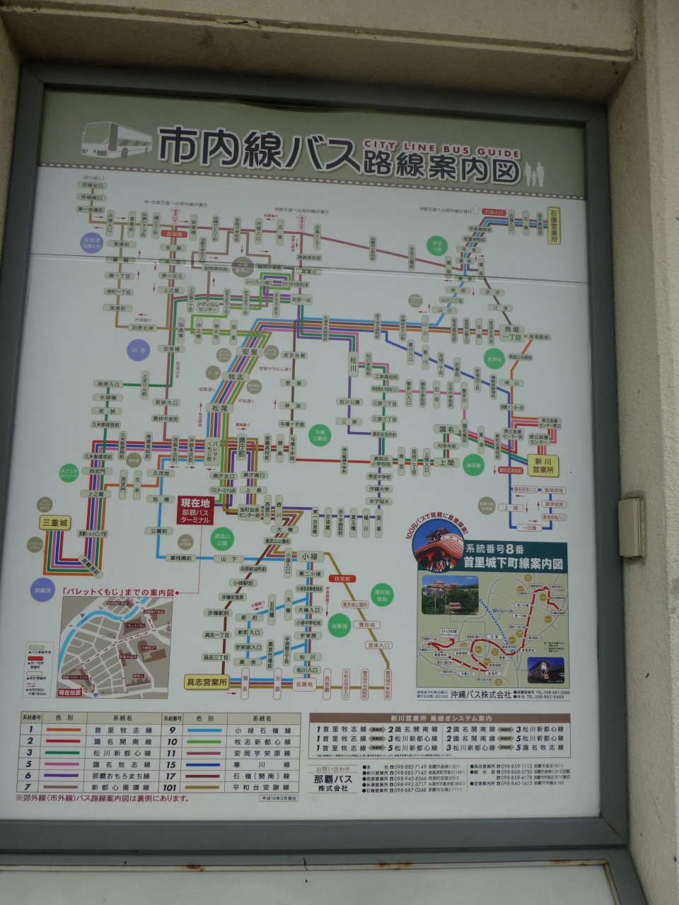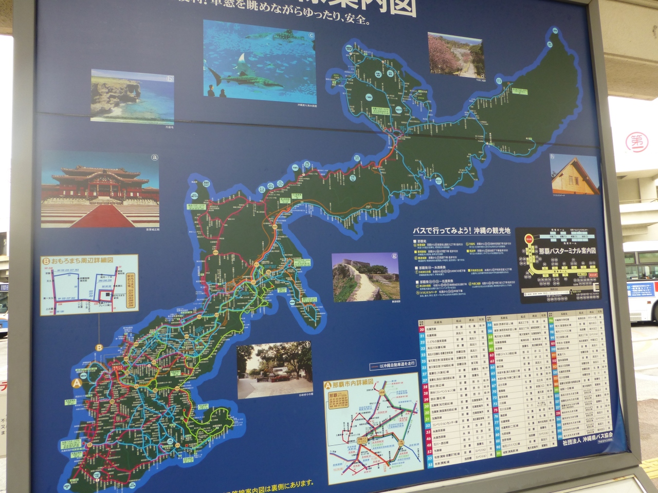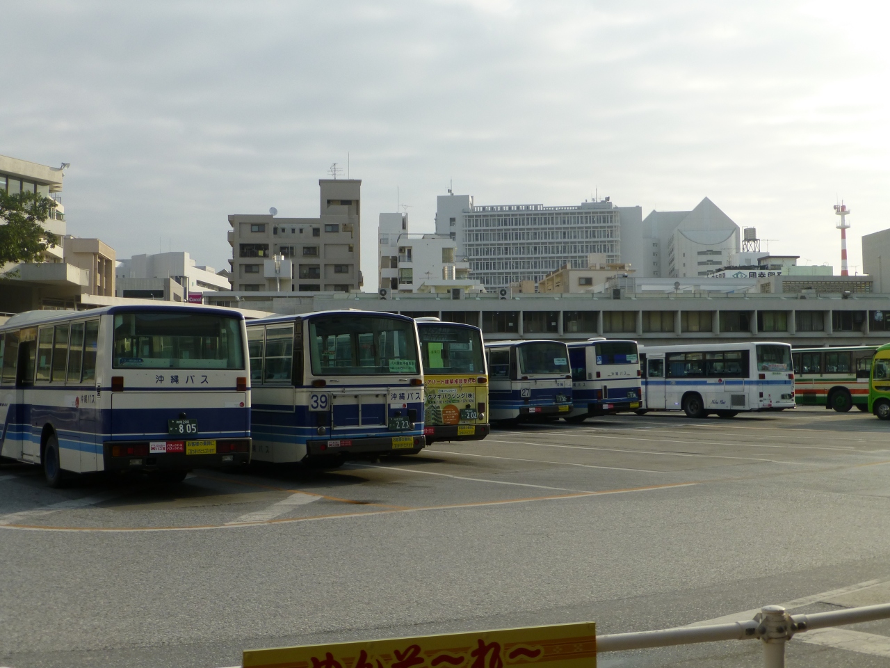 那覇から南部、名護などへ行くときには路線バスを使いますが、ゆいレール旭橋からすぐの場所にバスターミナルがあり、6社ぐらいのバス会社があります。行き場所によってバス会社は違いますが、鉄道のない沖縄では個人で行動するには、バスかレンタカーになります。運転しない人にはここからのバスで観光に行ってください。