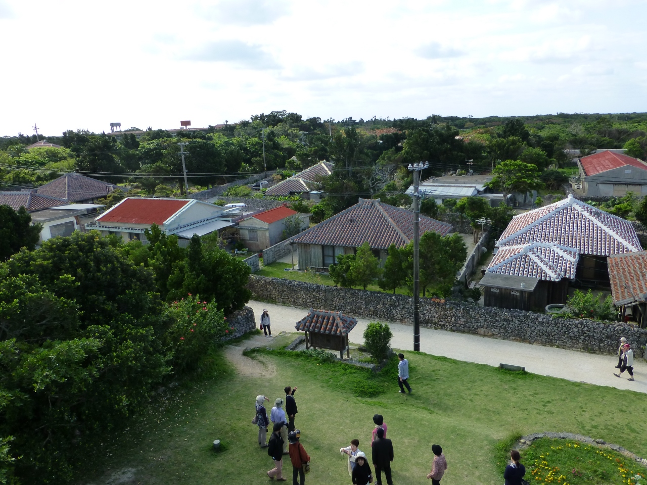 とても急階段で、、かつ狭い展望台ですが、島の集落が360度見渡せます。