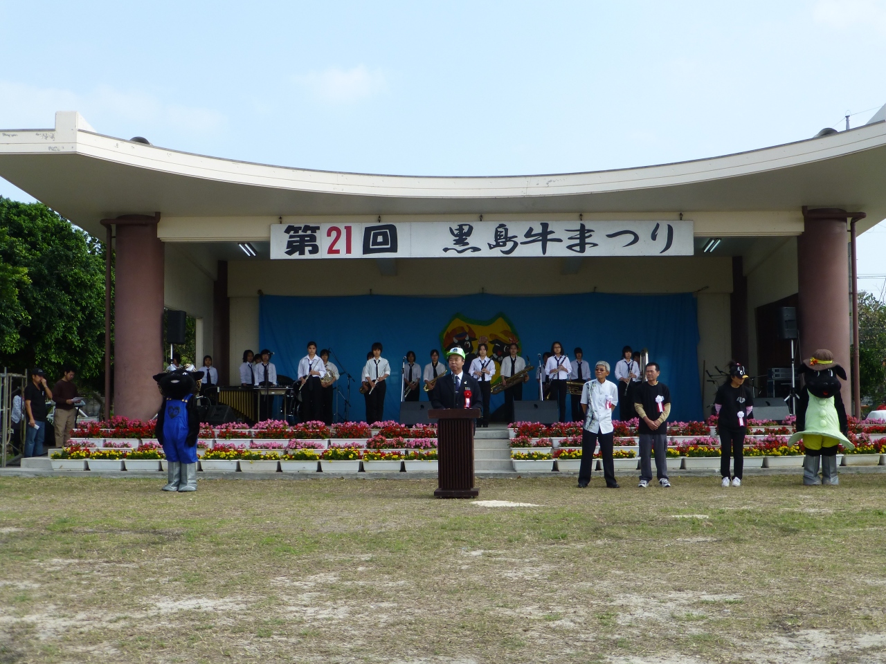 毎年2月最終の日曜日に行われる黒島の牛祭り。最大のイベントは抽選で牛が一頭当たること。牛の餌のロールころがし、ライブ、小中学校の吹奏楽で盛り上がる。