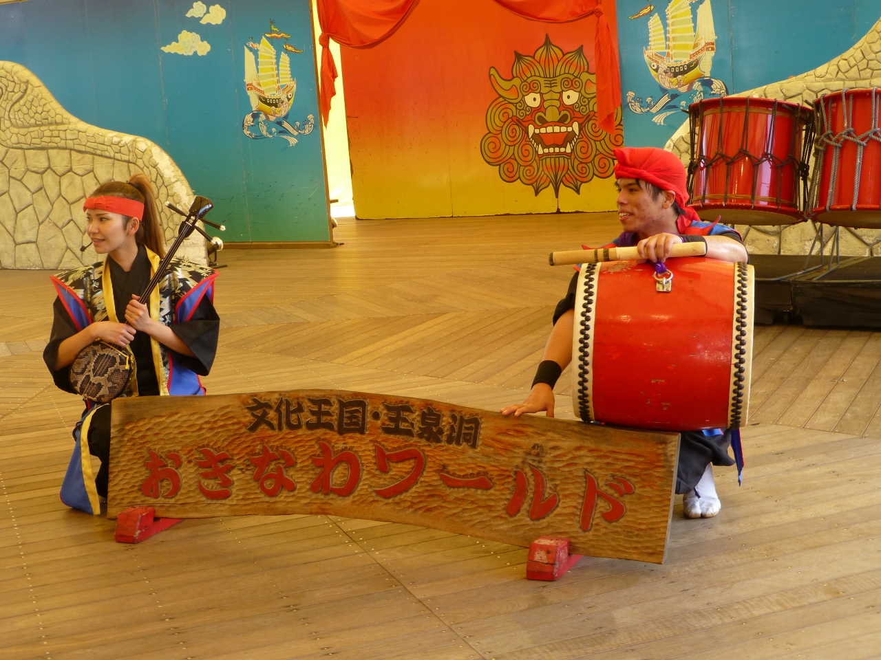 那覇からバスで1時間弱。鍾乳洞、玉泉洞の隣にある、テーマパークです。三線、琉球ガラス、シーサーつくりなども体験できます。三線、えいさーの演舞が1日3回あります。別料金で鍾乳洞、ハブセンターにも入れます。
