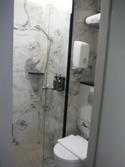 - シャワールームは狭い。