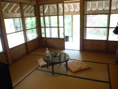 2泊オクマリゾートでのんびり過ごした後、1泊だけ古民家宿に泊まってみました。しらぱまさんが何軒か経営されており、私たちは8畳一間+トイレ+お風呂の「四つ竹」にしました。夫婦2人では十分でした。