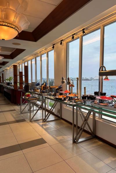 プレミアムサービスのプラン、景色の良いバーで飲み放題なのはとても良いサービス。ただチェックインはオンタイム。15時近くになると順番に呼ばれる。なので早く着いた場合はフロントでまず整理券をもらうのがポイント。朝食は混みすぎで、もう少し時間配分をホテル側で考える必要がある。