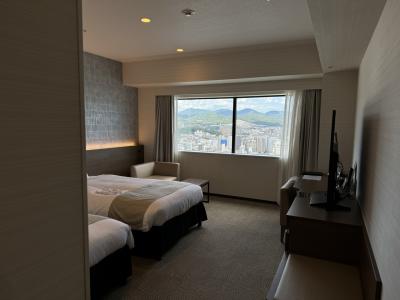 駅から徒歩5分ほど。入り口は1階にあり、フロントは13階にある。フロントの斜め前にドリップ式のコーヒーがあり、これが結構助かる。私は広島ファンのため、必ずMAZDA Zoom-Zoomスタジアム広島が見える側の部屋をリクエストする。
