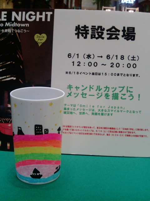 2011年6/18(土)に東京ミッドタウンの芝生広場に、キャンドルのあかりで描かれた大きなスマイルマークが登場するそうです。