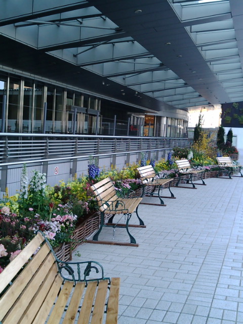 普段は何もないタワーズテラスに、きれいなお花に囲まれたベンチが出現しています!