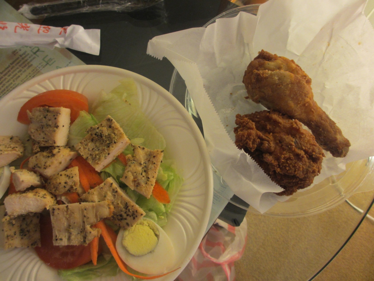 口コミでグアムのケンタは美味しい!とみて、ぜひともと買ってきました。サラダにはグリルチキンかフライドチキンをトッピングできるし、オーソドックスなチキンも日本のよりは衣がパリッとしていてとても美味しかった!どんぶりもあるんですよね。次回はチャレンジします