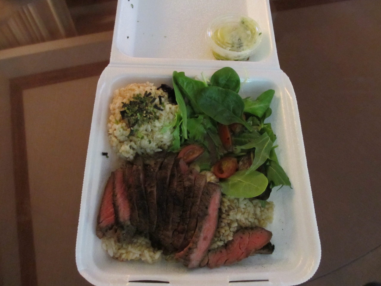4トラで知ってからどうしても行きたくて行きたくて。念願かなって行けました!ステーキロール(ノーマル)とすき焼き丼(牛)をtogoして皆で分けて食べました。普段薄味の父もさっぱりしていて美味しいと絶賛。すき焼き丼も2歳の息子はバクバク食べていました。多少便が悪いですが、ドンキまで行ったら是非行ってみてください!