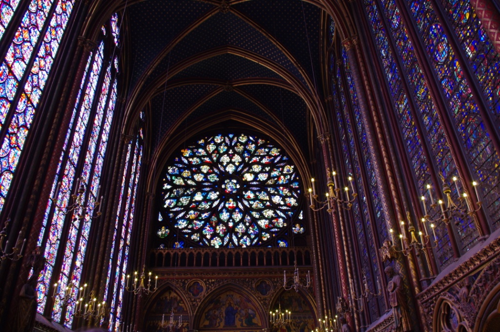 壁面のほとんどがステンドグラスで埋め尽くされており、