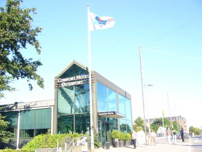 エスターポート駅前の道路をわたって、正面にあるホテルです。低層で奥行きの長いホテルなので、一見駅かレストランのように見えるため、ホテルとは気づかないかもしれなません。入り口のところにコーヒーメーカーがあり、飲み放題となっているため、物価の高いデンマークには、とってもありがたいです。部屋の内装は、シンプルで清潔感があります。朝食は、パン・果物・ドリンクとも充実しています。コーヒーの種類も色々ありましたよ。値段もネットで予約すると、お手ごろなので、おすすめです。
