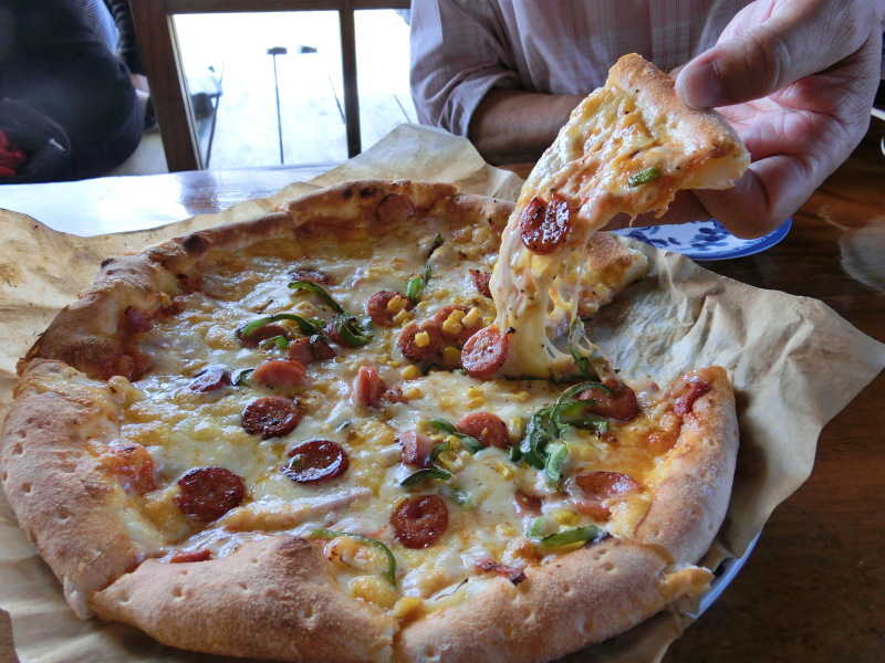 ピッツアとサラダ、飲み物だけですが、これがとっても美味しくボリュームがあります。
