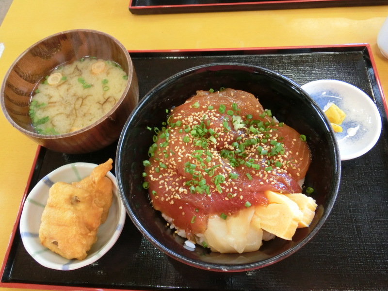 マグロ漬け丼定食<750円>、切り身がが厚くて、たっぷり入ってます。