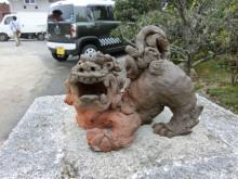 右側に置かれた口の開いたシーサーは、雄で福を招き入れ、左側の口を閉じた雌はあらゆる災難を家に入れないとされています。