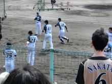 ドームだとほんとに小さくしか見えない選手たちが、すぐ目の前を通り過ぎるというのは、ファンにとってはたまらないかも・・。
