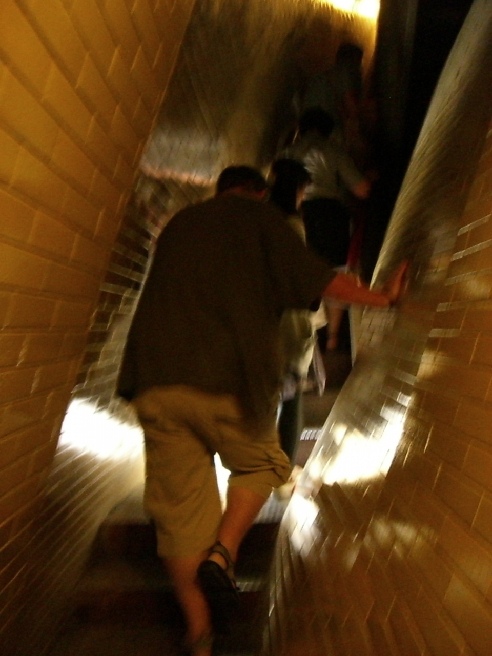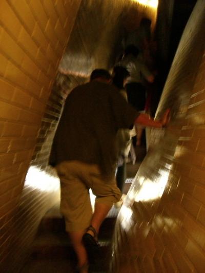 いったんテラスに出た後また階段があり、ここが狭くて傾いていて変な感覚になります。