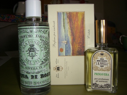 ローズウォーターはトスカーナのバラを使ったもので、その素敵な香りはなんともいえません。顔にもボディにも全般に使え、バラの香りをまとっているようです!