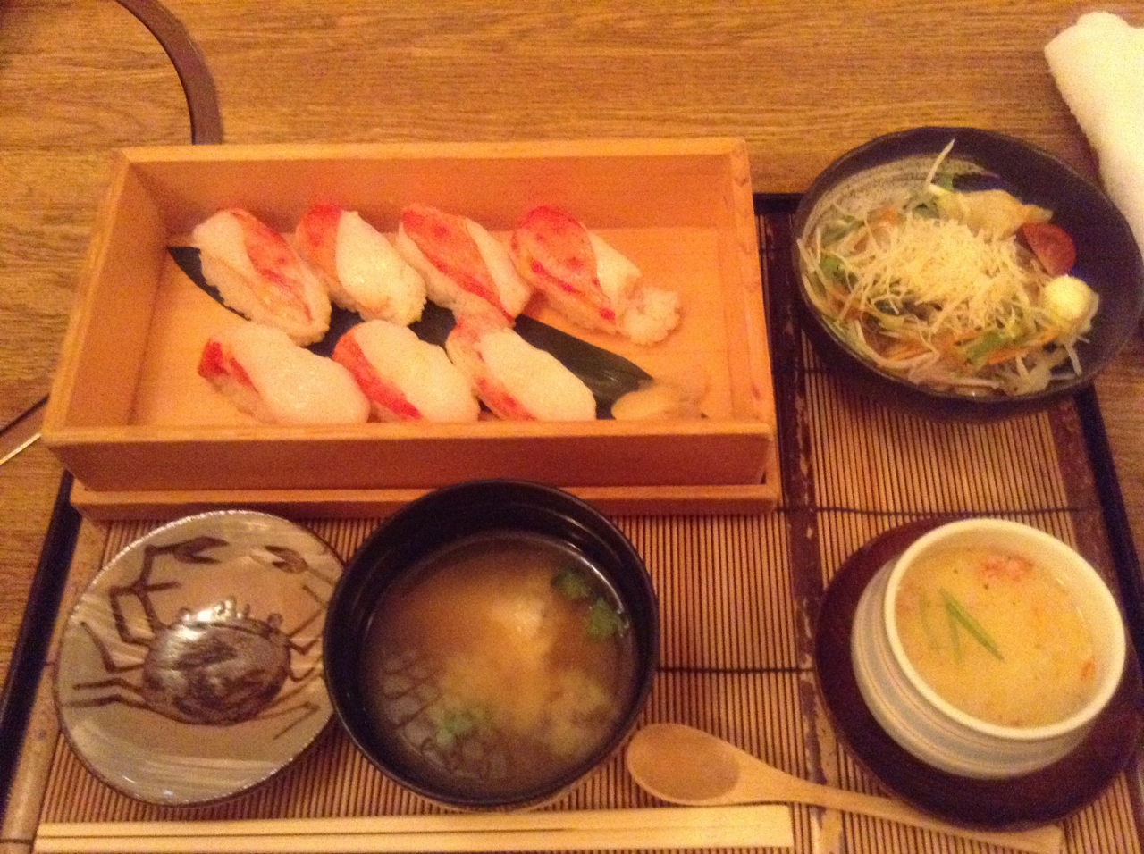たらばの握りはもちろん、お味噌汁にもカニが入っていてカニ尽くしで美味しかったです。