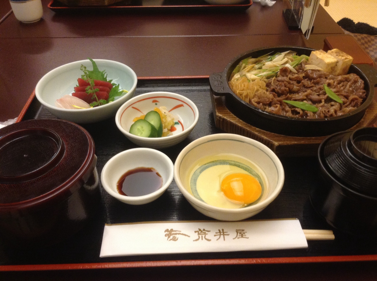 それでも牛鍋にお刺身も付いていて、ボリュームたっぷり味も大満足です。コストパフォーマンスは良いと思います。