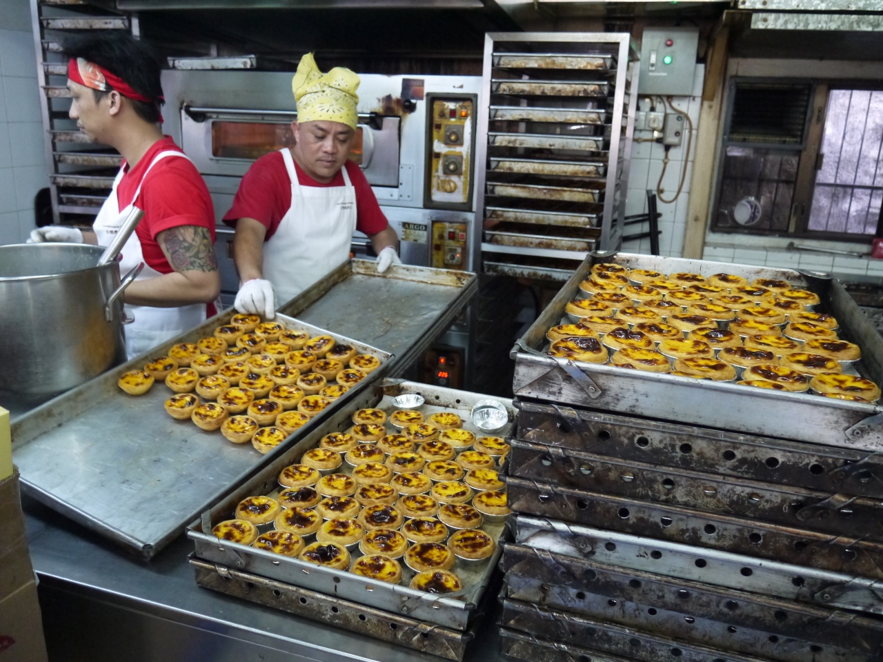 コロアネのバス停を下りるとすぐにお店が見えてきます。いつでもお客でいっぱいのようです。でも小さいお店の中にはたくさんの店員さんがいるので、そんなに待たずに買えます。店内はエッグタルトはもちろんの事、パンやフルーツジュース、アイスコーヒーなども販売しています。店内では常にエッグタルトを焼き続けているので、いつでも焼きたてを買うことができます。個人的にはマーガレット・カフェ・エナタのタルトよりはこちらのタルトの方が甘さが抑えられていて好みです。