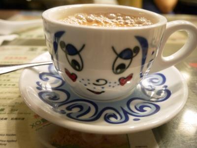 遅めの夕食にひとりで入りました。メニューは豊富なので、また食べに来たいと思わせてくれます。ホットミルクティを頼むとこんなにかわいいティーカップでいただけます。注目していただきたいのは、店員さんが付けているエプロンです。日本語が書かれているので、それを見に訪れてみてはいかがでしょうか。