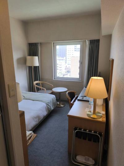比較的リーズナブルなホテルなのですが、けっこうお部屋は狭めで窮屈な感じがしました。机がないというのはかなり不便さはありました。枕元のサイドテーブルと鏡台のハイブリッドみたいなものがベッドサイドにありまして、それが机のかわりになっているのかなって感じでしたが、やはり机がないとちょっとものを食べたり、書き物をしたりっていうのがしにくくて。あらためてホテルでは机の重要性を感じるお部屋でした。