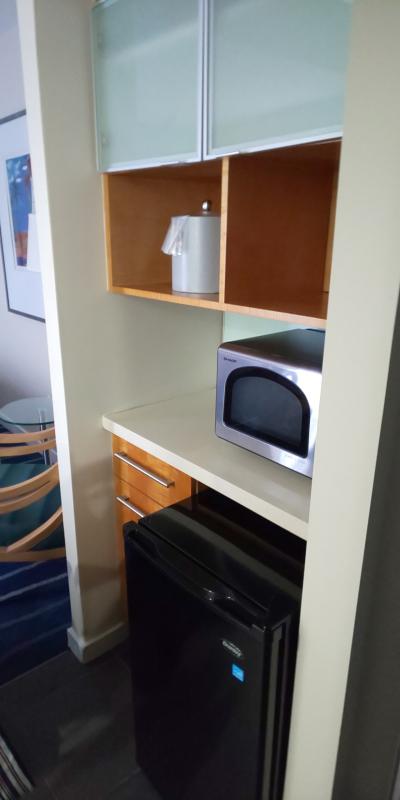 アラモアナセンターのとなりにある改装したてほやほやのホテルです。エレベーターの台数も多いためすぐきてくれてストレスフリーでした。フロントはスタッフさんけっこう人がいましたがいつも行列してました。チェックイン開始すぐはこれからは避けたいなと思うくらいです。部屋は広くてインテリアも新しめでした。ブルーをイメージカラーにしているみたいでさわやかなイメージの部屋でした。コンロ付のフルキッチンがあったので自炊によって食費を削ることができたのが良かったです。