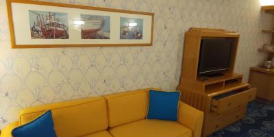 ドナルドダックルームを予約しました。ソファも黄色でベッドにはドナルドらしいベッドメイキングとなっていてとてもかわいいです。