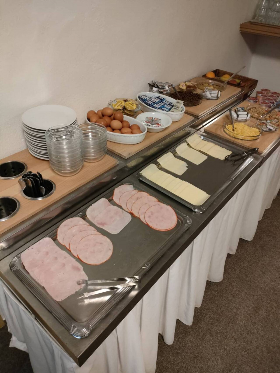 プラハにあるホテルです。古さは感じますが朝食もおいしかったですし、とてもリーズナブルで泊まって満足でした。部屋の柱が建物の構造上むき出しだったので、それがちょっと邪魔ではありましたが、これもまたあまりない経験というか、思い出の一つにもなっちゃうくらい面白い造りだなと今となっては思えます。内装も温かみのある雰囲気。木のぬくもりを感じられるお部屋でした。また、朝ごはんもついていて豪華なものではなかったですが料金に含まれているとしても十分なラインナップでパンの種類も選べて、ハム、チーズもたっぷりいただけたのが嬉しいです。