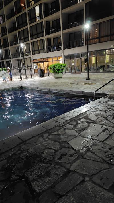 夜遅くまでプールがあいており、丸一日観光をしてホテルに帰ってきてからでも遊べるというのがよいなと思いました。お水の温度もちょうどよかったので夜でも入りやすかったです。部屋はかろうじて海側でしたので建物と建物のすきまからほんの少し海が見えました。なのでハワイに泊まってる感はほんのり感じます。(笑)キッチン付きだったので朝食を軽めにつくったりしてちょっと節約もできました。英字新聞の配達がありましたが、それはなくてもよいかも。そのかわり少しでも安くしてくれるとなお良いかと思いました。