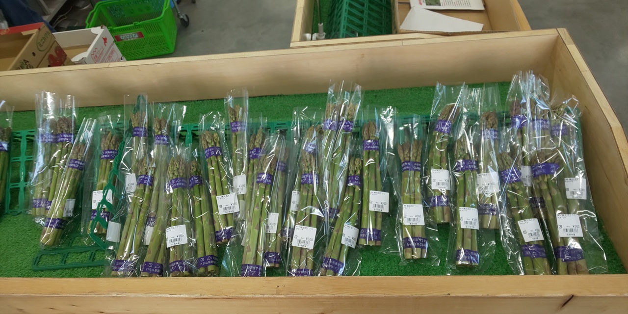 アスパラはかなり太くて立派なもの。なかなかこの太さは他県では見ないなと思いました。値段はお高めですが、買う価値ありかなと思いました。- 旅行時期