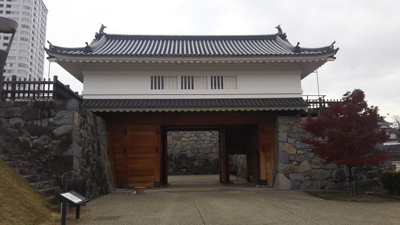この門は甲府城の門で、割と外側に位置する門です。明治時代の廃城令で壊されてしまったと言われる門のひとつで最近になって復元されました。