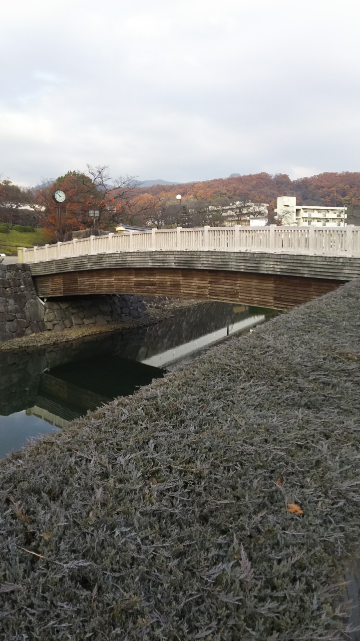 甲府城はもともとお堀が2つあり、そのうちの外側のお堀はもうすでに市街化によって埋め立てられてしまったものですが、内側のお堀はまだ残っており、その内側のお堀を渡るための橋がこの遊亀橋。ゆうきばしと読みます。