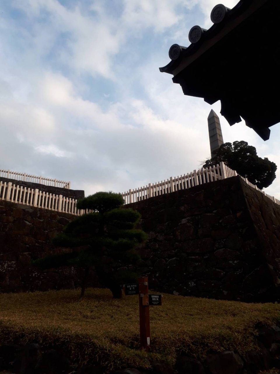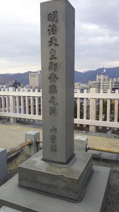 甲府城城内に、高くそびえる石碑があります。明治天皇への感謝の意味でつくられた石碑だそうです。