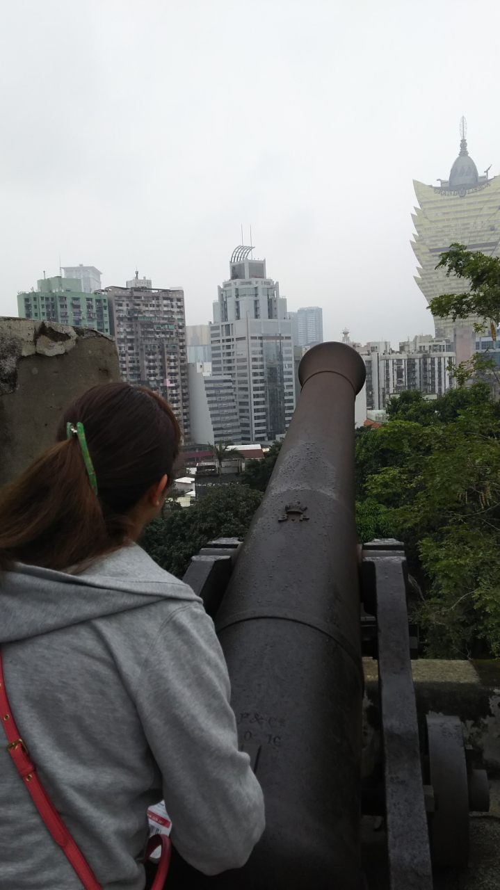 今はレプリカの砲台も置かれていて、砦からの景色はとても眺めがよくあいにくの曇りでしたがマカオを一望できました。