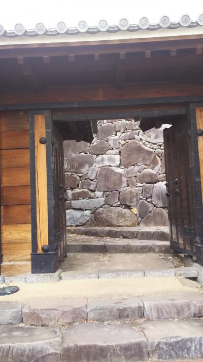 ひとつ目の石垣をのぼるとくぐれる門で、今は復元されたものではありますが、当時の作り方で作られています。