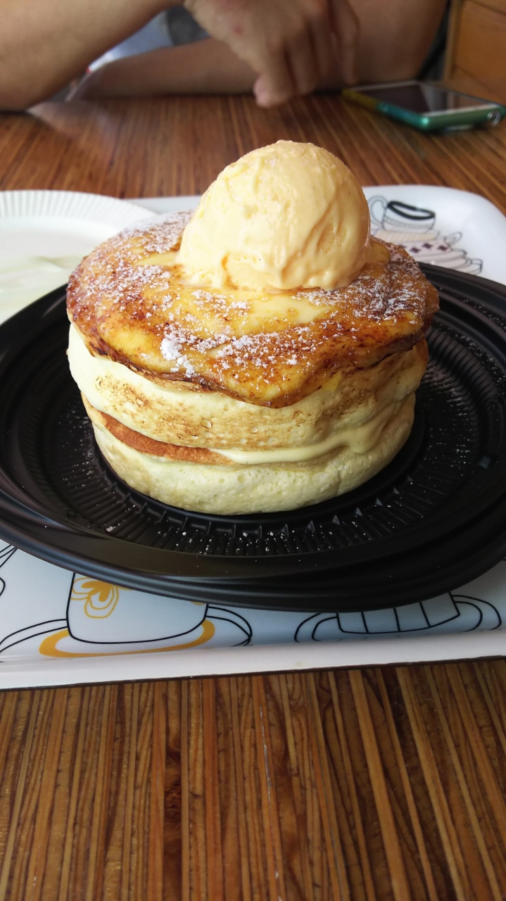 ブリュレパンケーキも外はカリカリでシロップとアイスクリームを溶かして食べます。冷たいのと温かいのを組み合わせて食べるのたって最高です!!