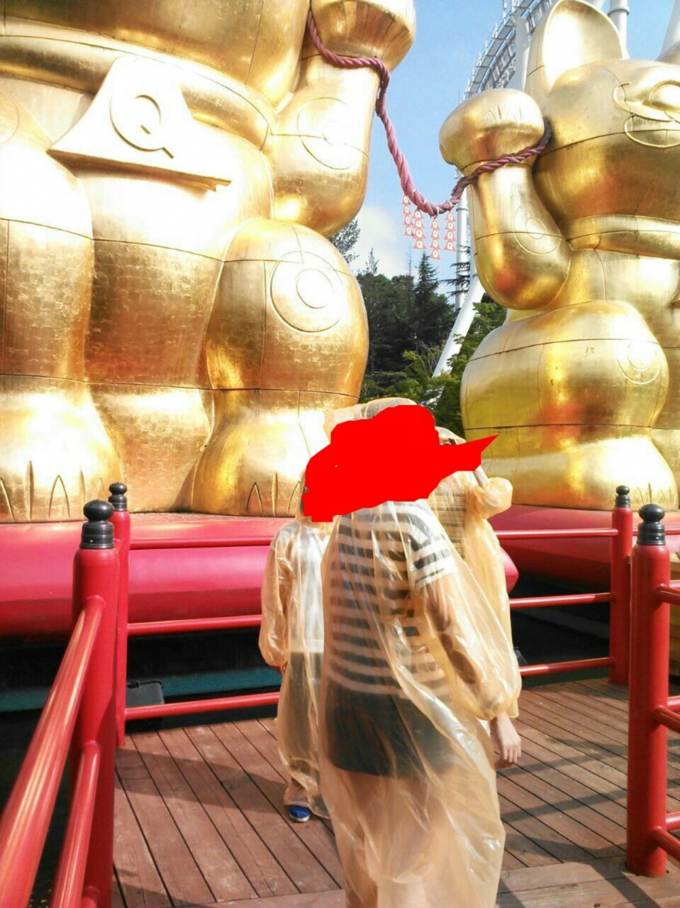最後には巨大な招き猫がいるお社があってそこで手をたたくと水が噴射されてメイクも落ちました。夏だったからよかったけど、顔も前髪も足もびしょびしょで、カッパがなかったらどうなっていただろうと思います。