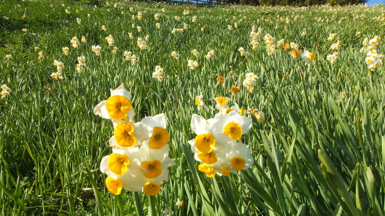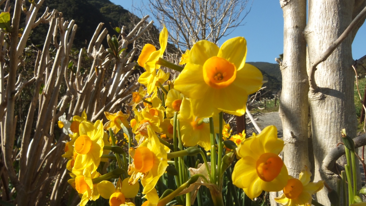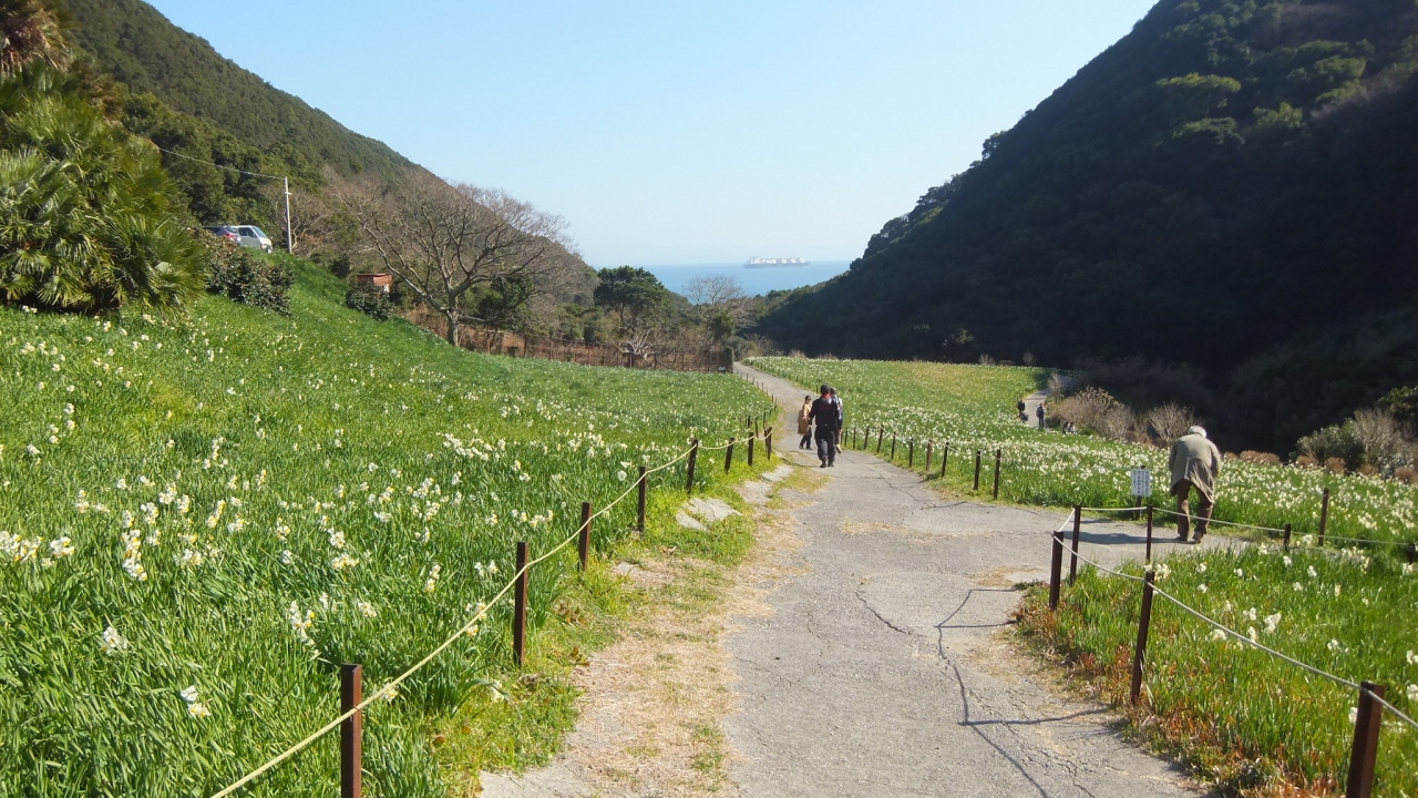 海を臨む急斜面に野生の水仙が咲いている様は、壮観です。