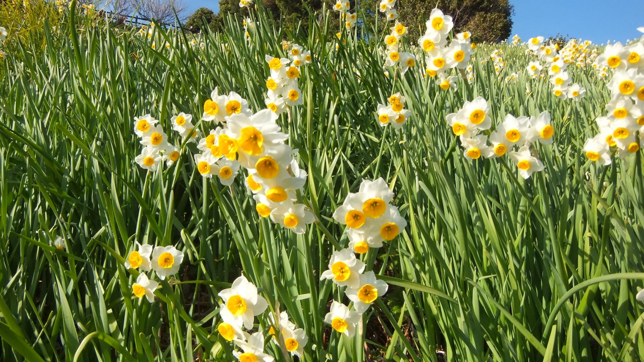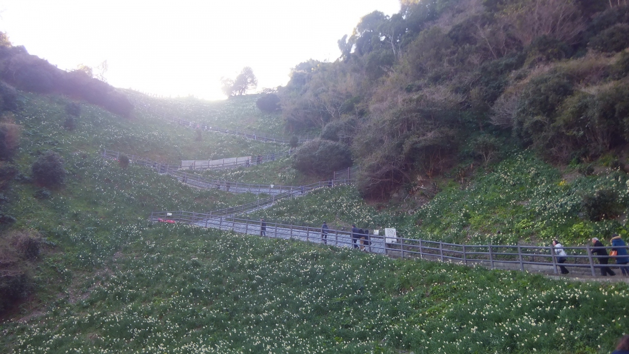 青い空と海のもと、断崖絶壁の丘いっぱいに咲き誇っている水仙は、一見の価値ありです(^^*- 旅行時期