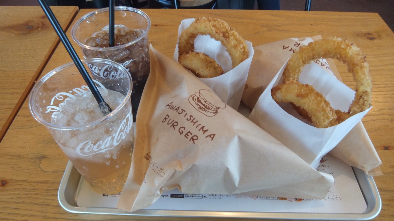 淡路産の玉ねぎカツとあわじ牛のコラボ、オニオンリングも甘みがあって美味しかったです。