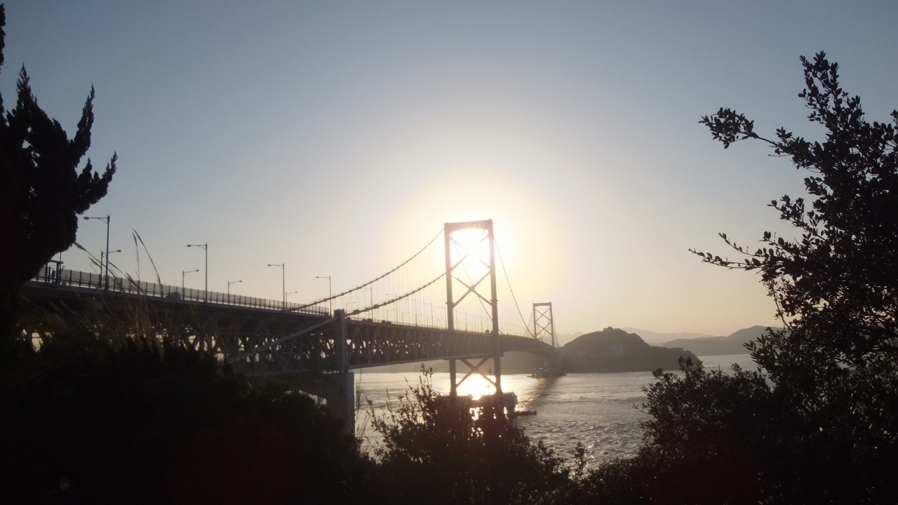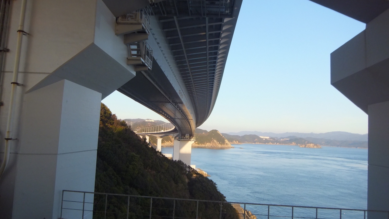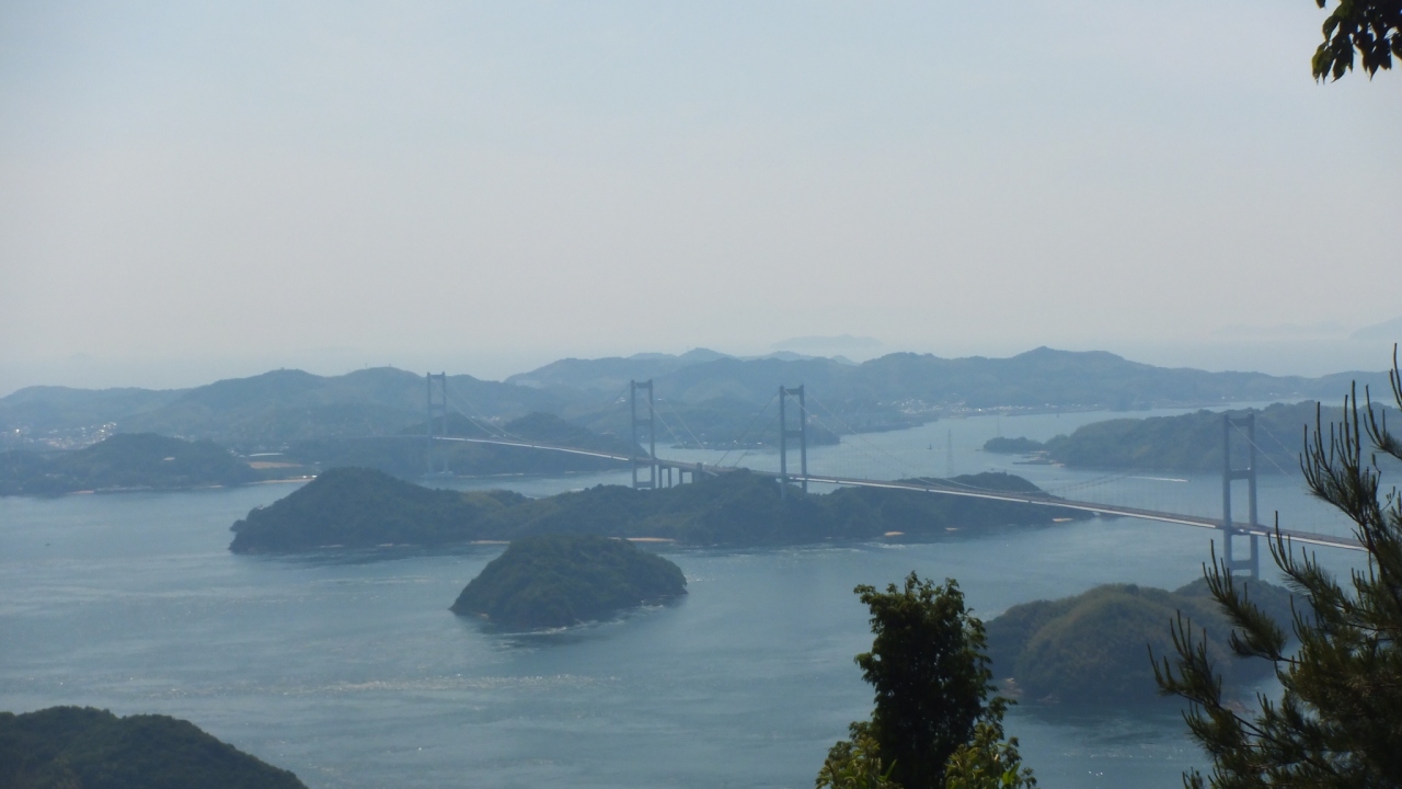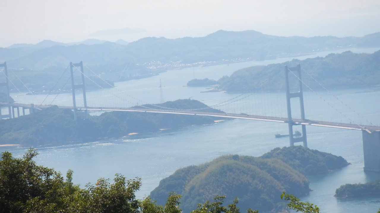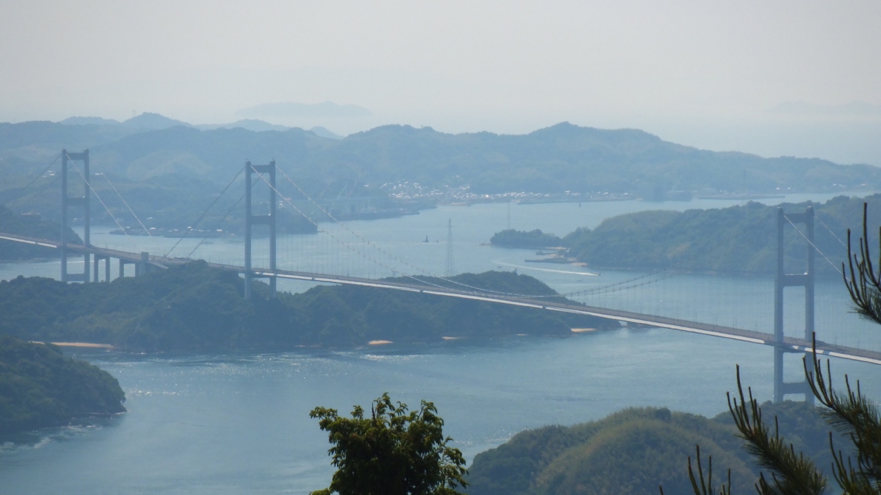 くねくねした山道を車で走ると、いきなり眺望が開け、来島海峡大橋が視界に飛び込んできます。